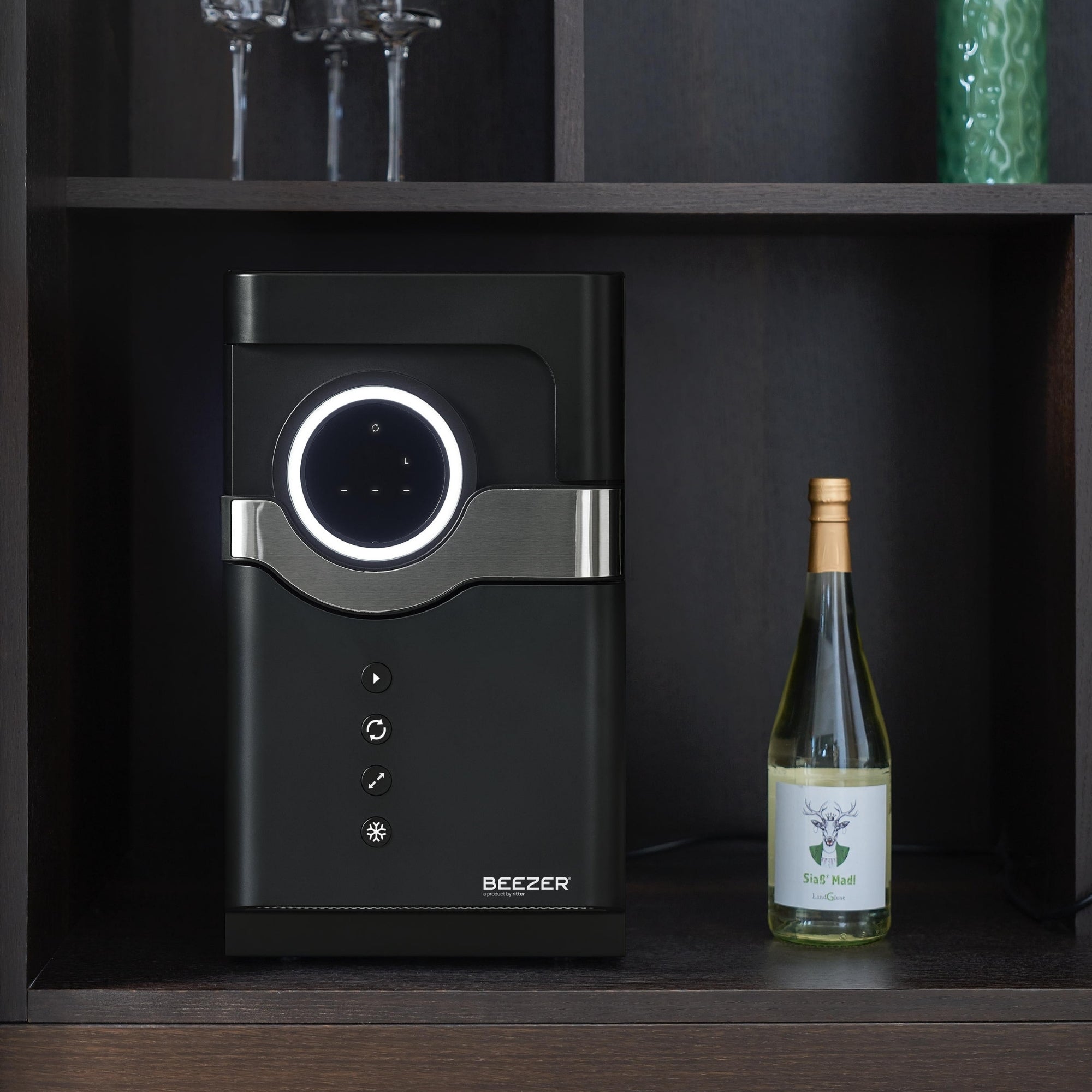 Die intuitive LED-Oberfläche und vier einfache Knöpfe ermöglichen es Ihnen, Flaschengröße, Kältestufe und Rotation individuell einzustellen. Über die smarte Steuerung mit der BEEZER® Connect App lässt sich der Flaschenkühler sogar vorkühlen und personalisieren – jederzeit und von überall.