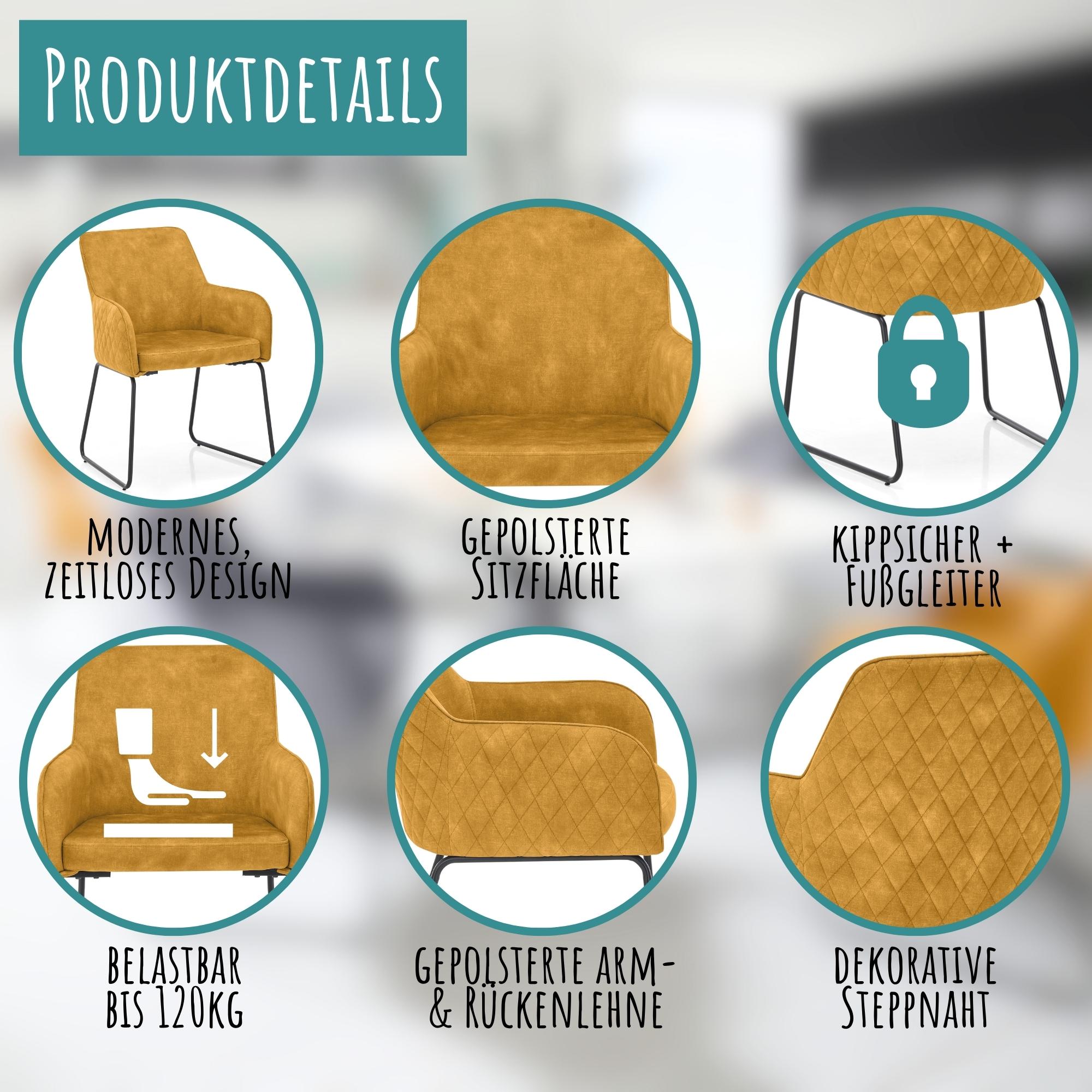 set one by Musterring Esszimmerstühle 'Fontana' 2er-Set, Kufenstuhl Polsterstuhl mit Arm- & Rückenlehne, Küchenstuhl mit gepolsterter Sitzfläche