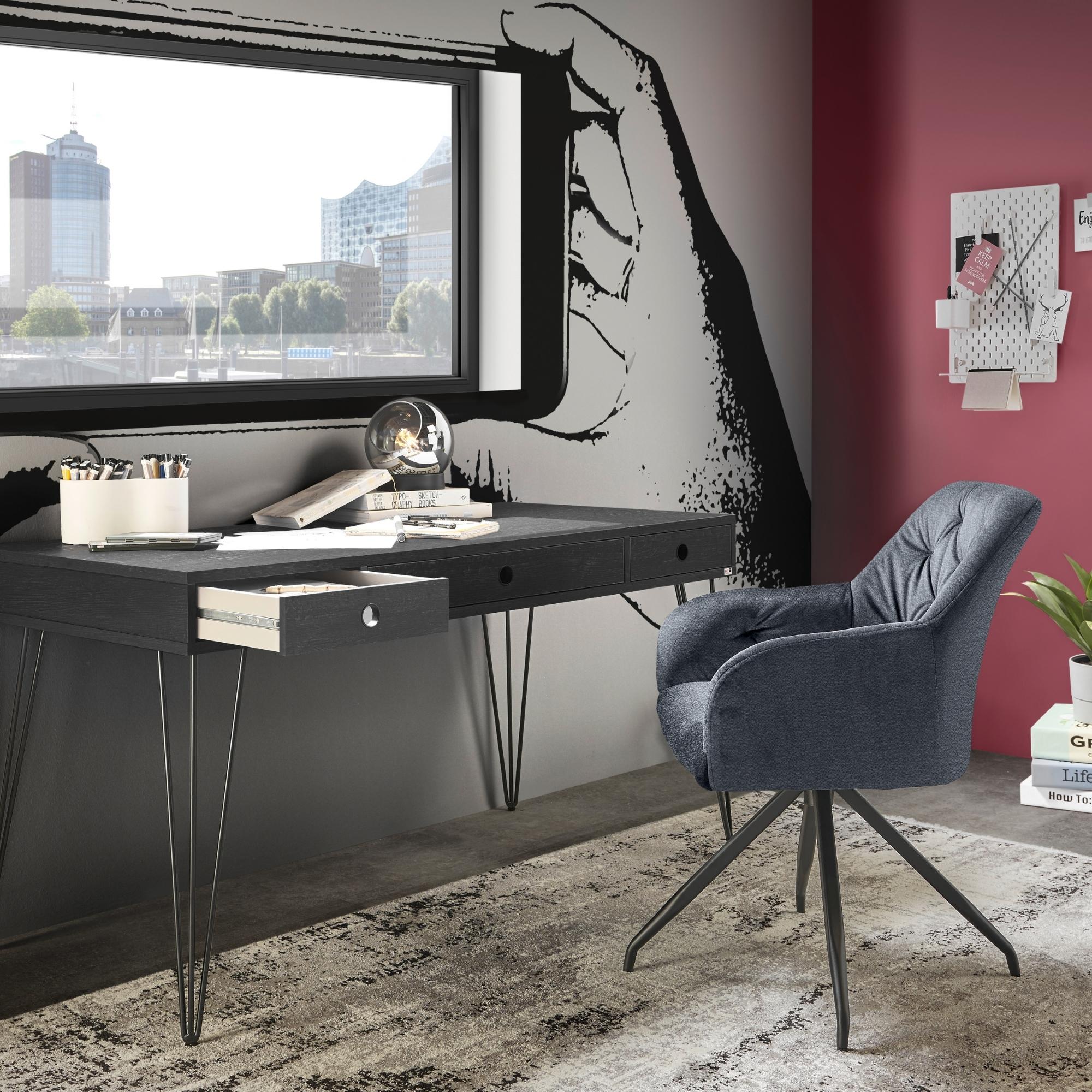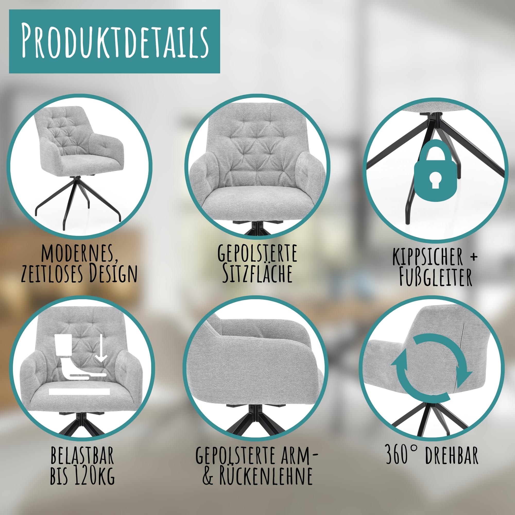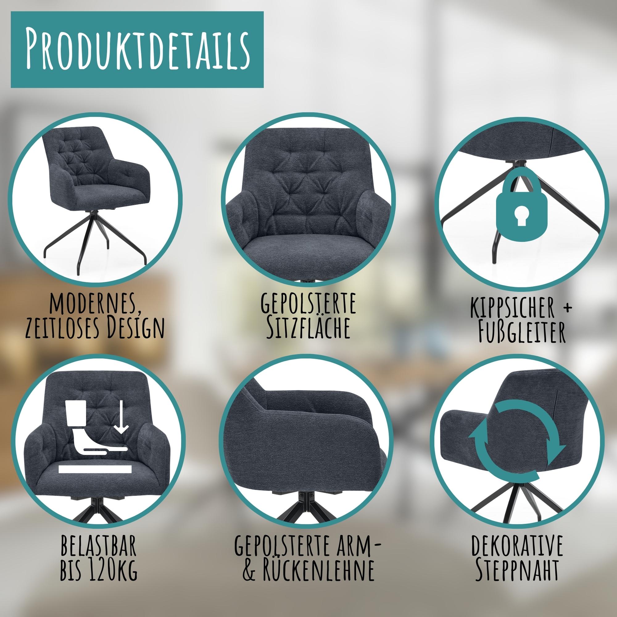 Der Stuhl verfügt über ein stabiles Stativgestell aus mattem, pulverbeschichtetem Rundrohr in elegantem Schwarz, wodurch er eine moderne Optik und hohe Stabilität erhält. Ein besonderes Highlight des Seattle Polsterstuhls ist seine 360° Drehbarkeit, die Ihnen maximale Flexibilität beim Sitzen bietet. Die Kunststoffgleiter an den Stuhlbeinen schützen Ihren Boden und erleichtern das Verschieben des Stuhls.