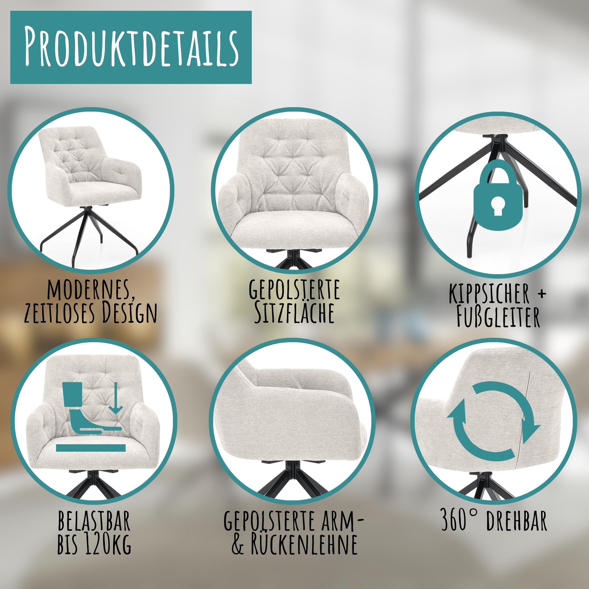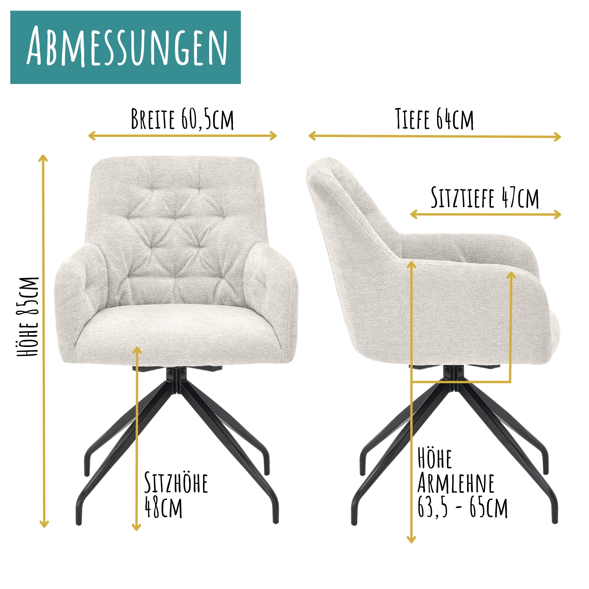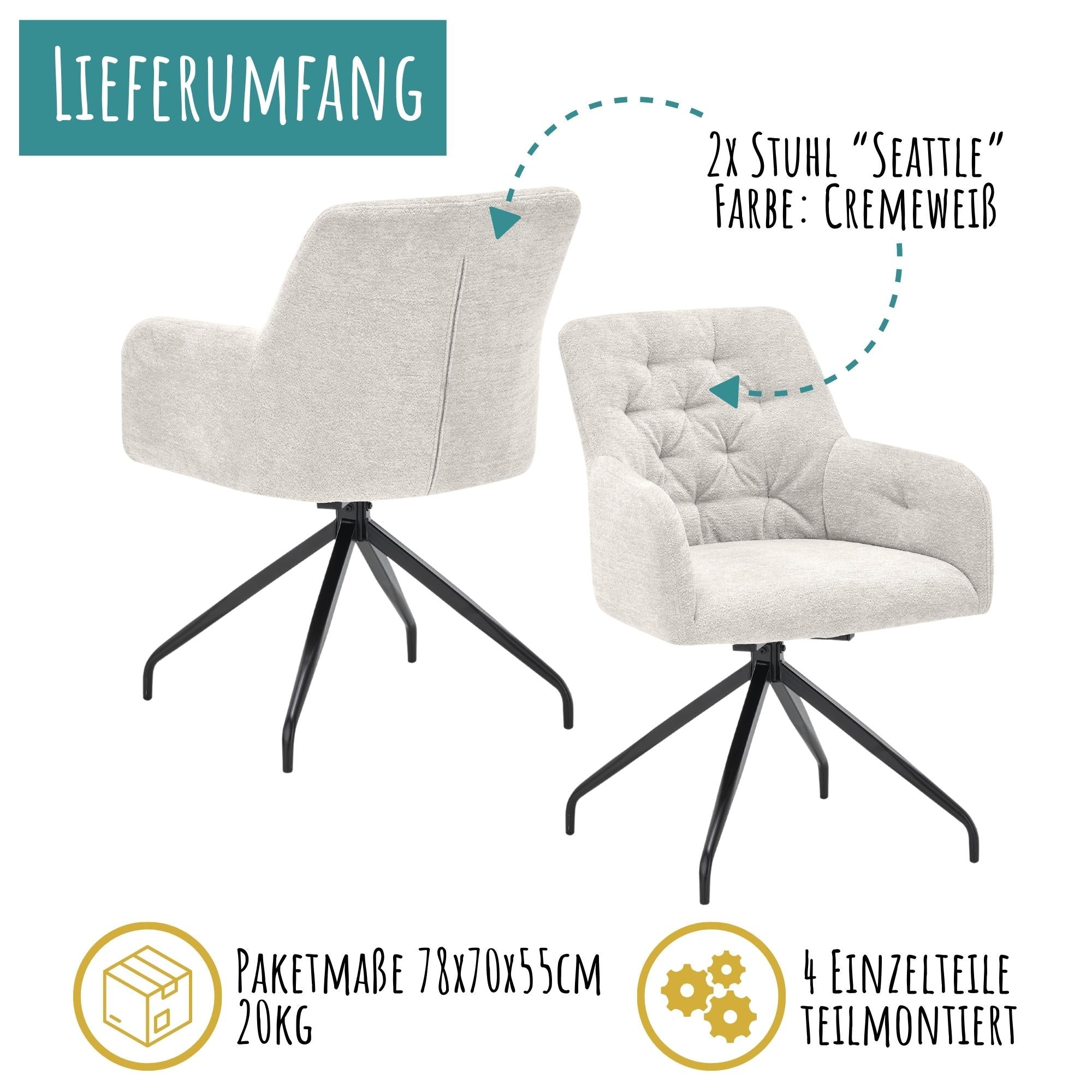 set one by Musterring Esszimmerstühle 'Seattle' 2er-Set, 360° drehbar, Polsterstuhl mit Arm- & Rückenlehne, Küchenstuhl mit gepolsterter Sitzfläche, cremeweiß