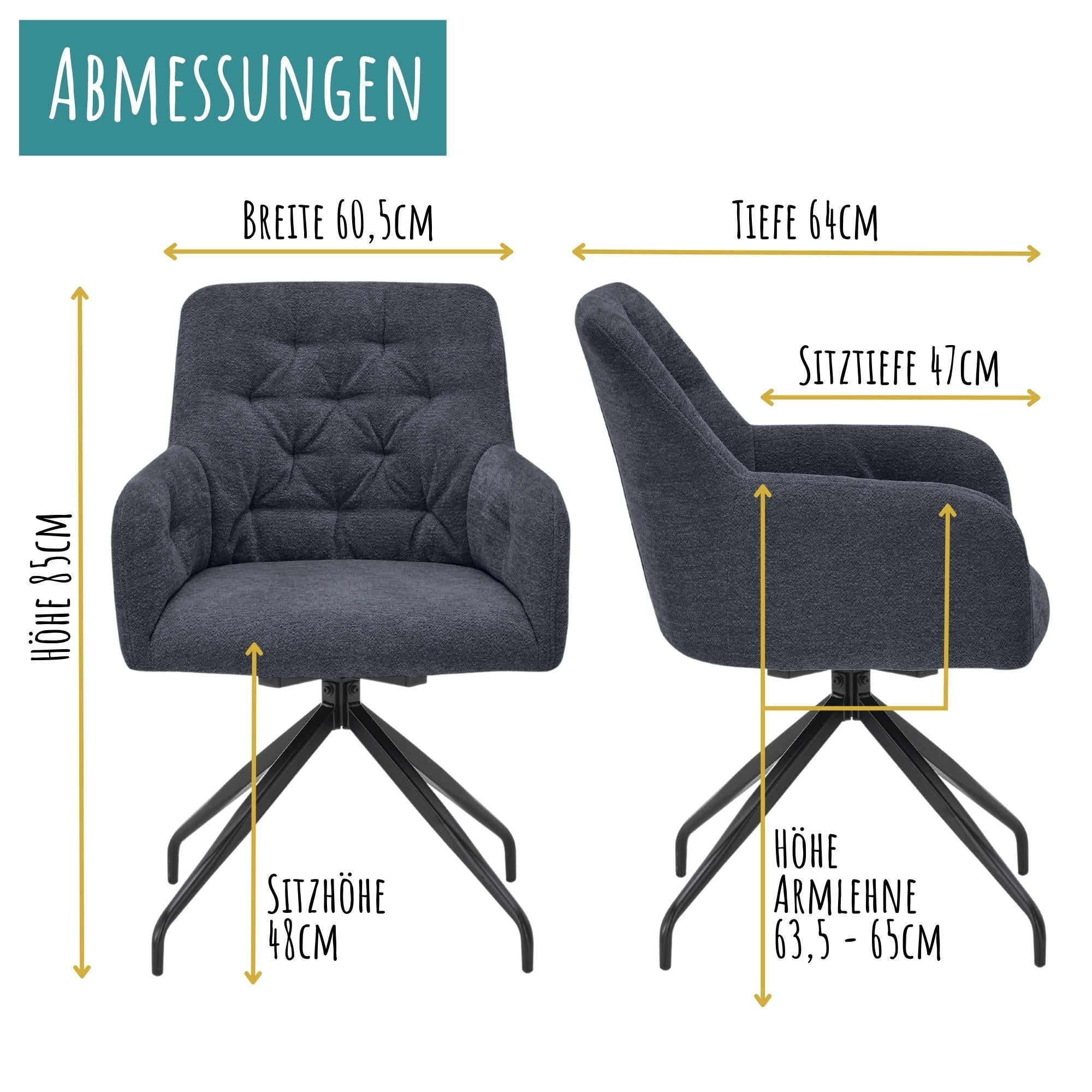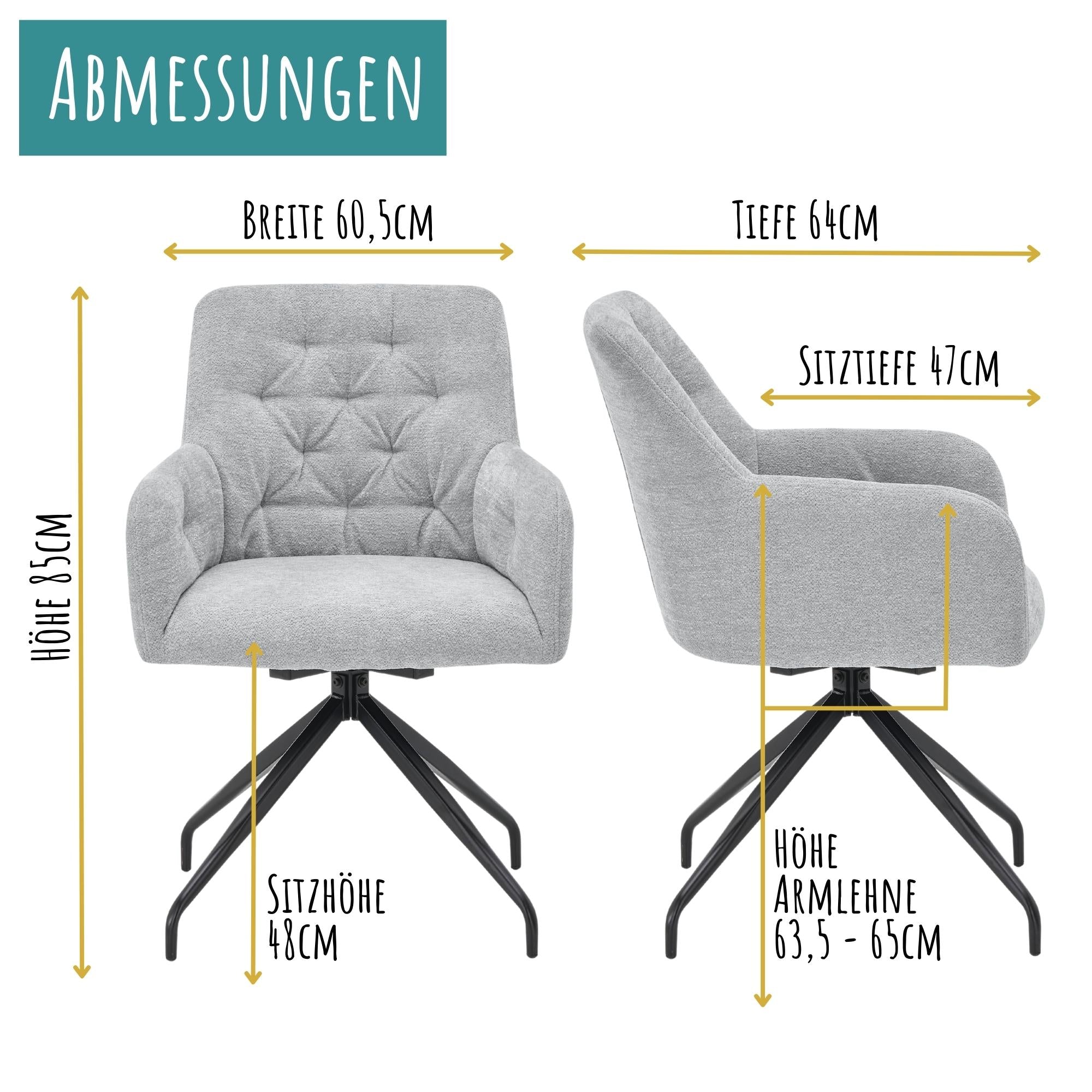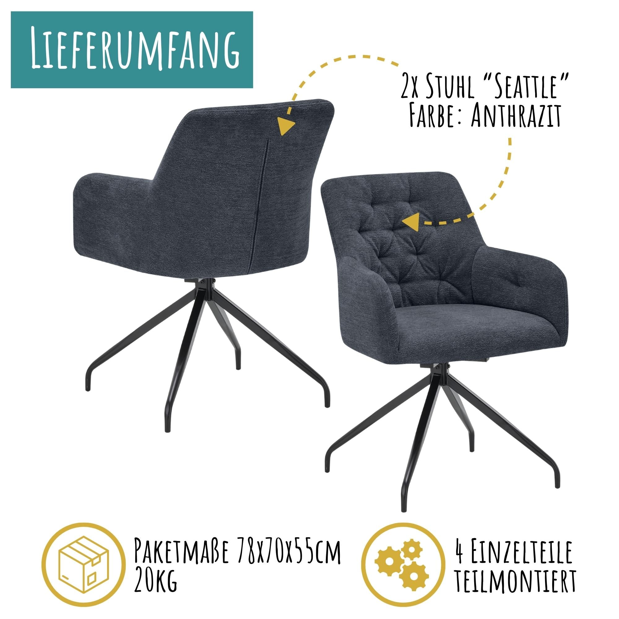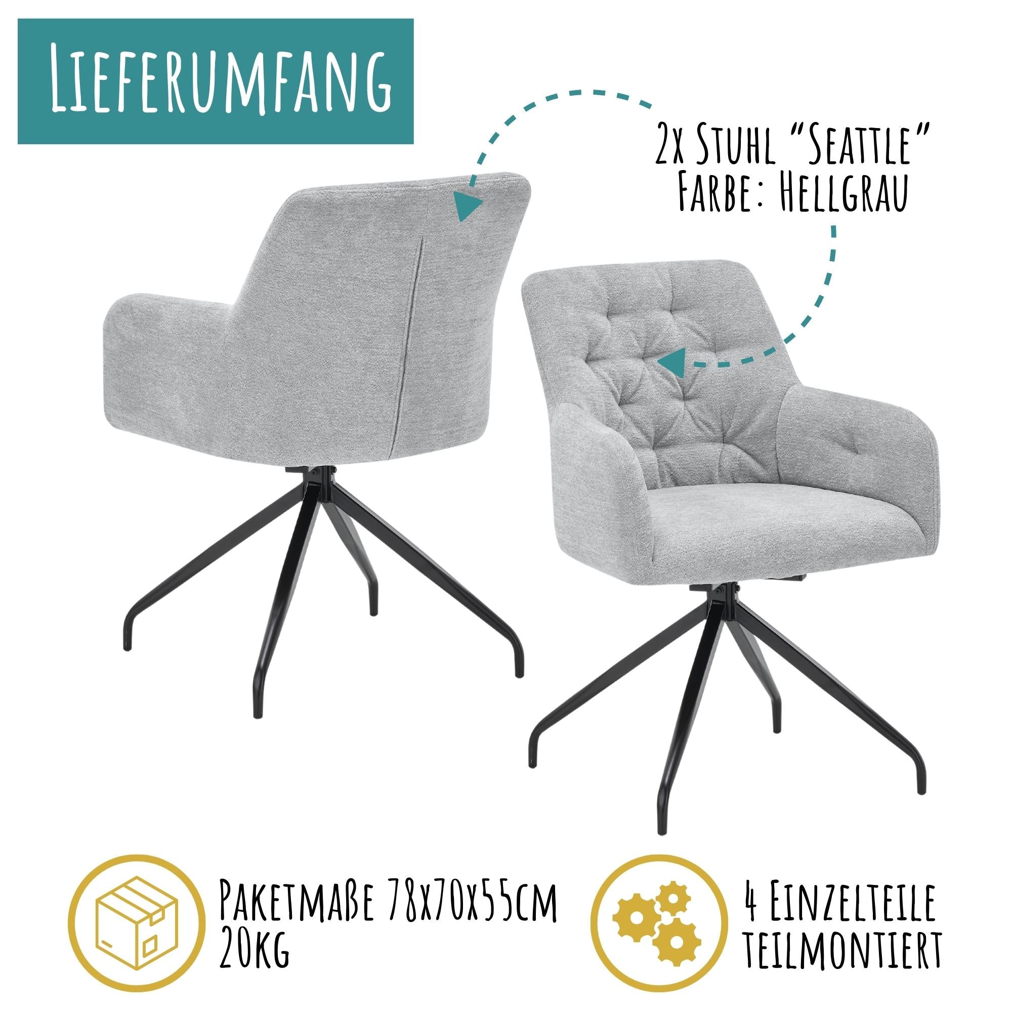 set one by Musterring Esszimmerstühle 'Seattle' 2er-Set, 360° drehbar, Polsterstuhl mit Arm- & Rückenlehne, Küchenstuhl mit gepolsterter Sitzfläche, cremeweiß