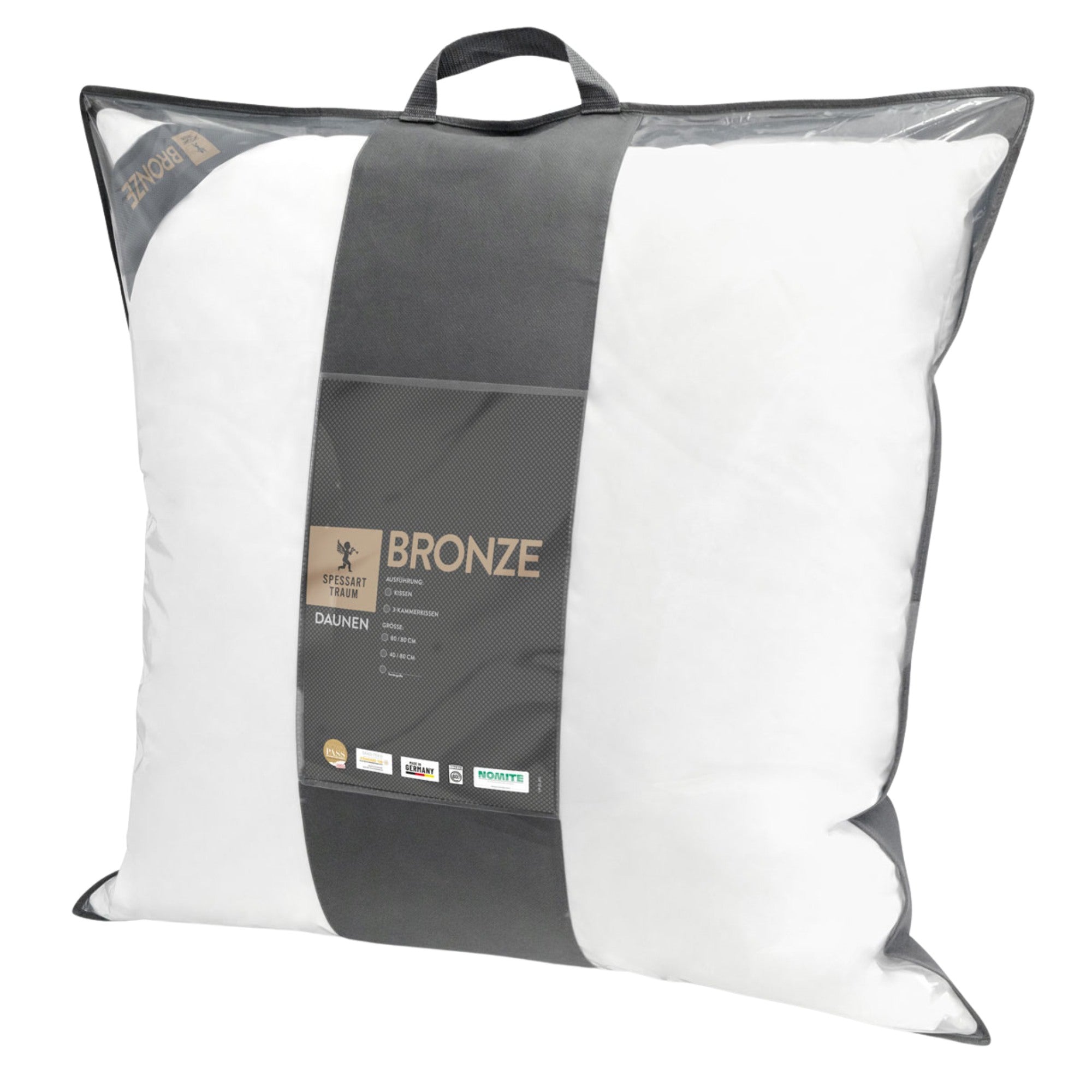 Das Spessarttraum Daunenkissen aus der BRONZE-Linie ist ideal für alle, die einen kuscheligen und erholsamen Schlaf suchen. Es zeichnet sich durch eine besonders anschmiegsame Füllung aus, die zu 85% aus weißen neuen Federn und zu 15% aus neuen Daunen der Klasse 1 besteht. Diese Mischung sorgt für ein ausgewogenes Verhältnis von Stützkraft und Weichheit, sodass das Kissen sich angenehm an die individuelle Schlafposition anpasst und gleichzeitig den Kopf optimal stützt.