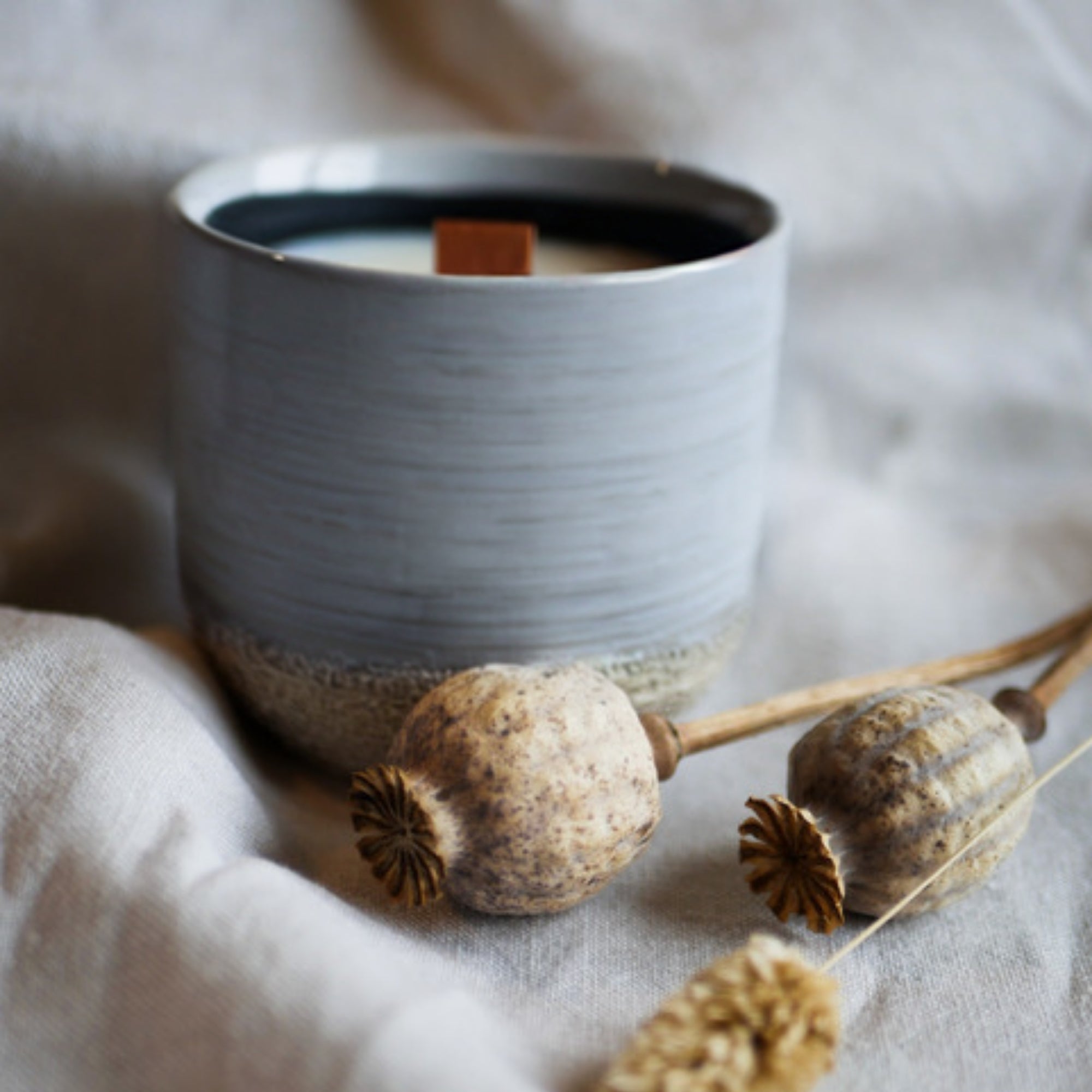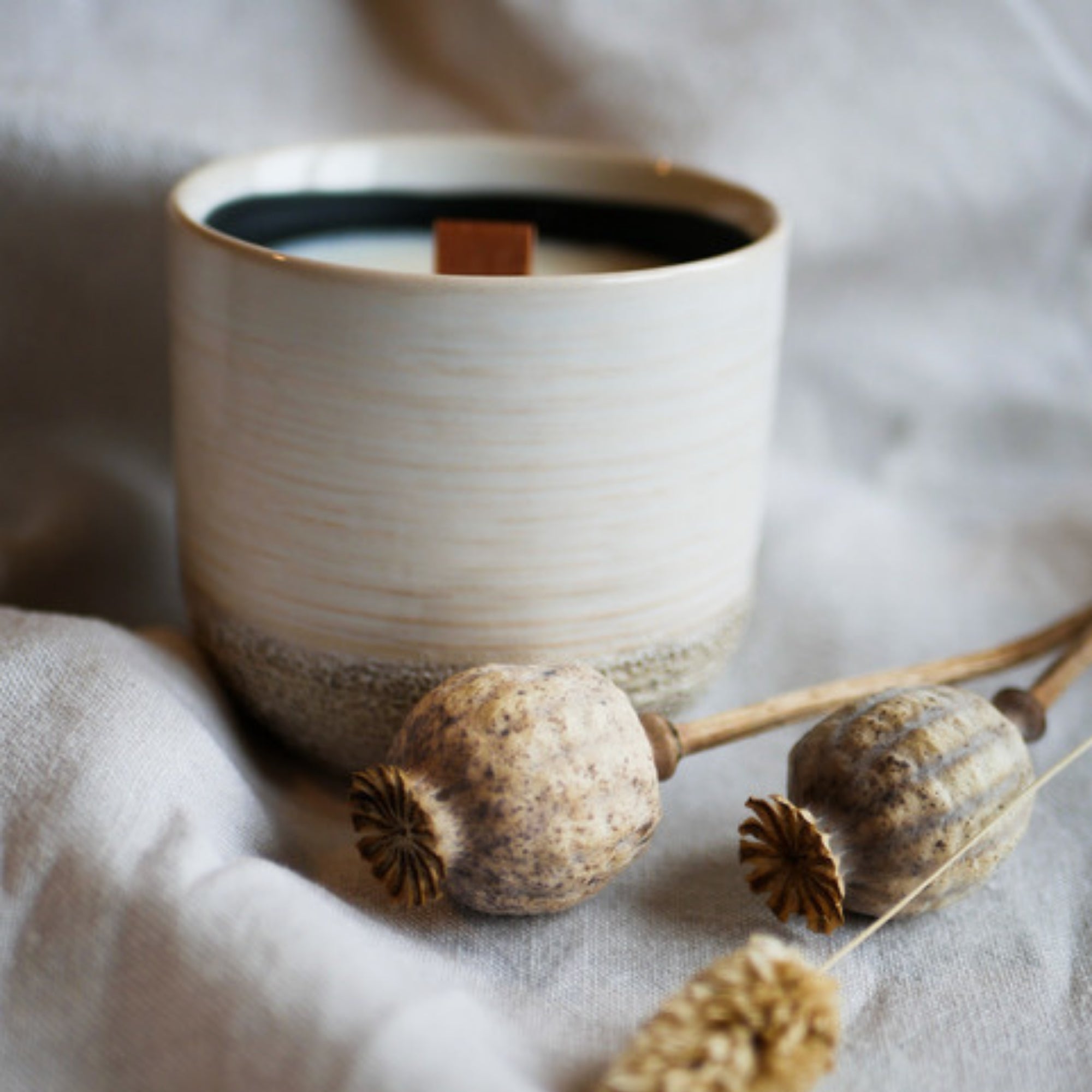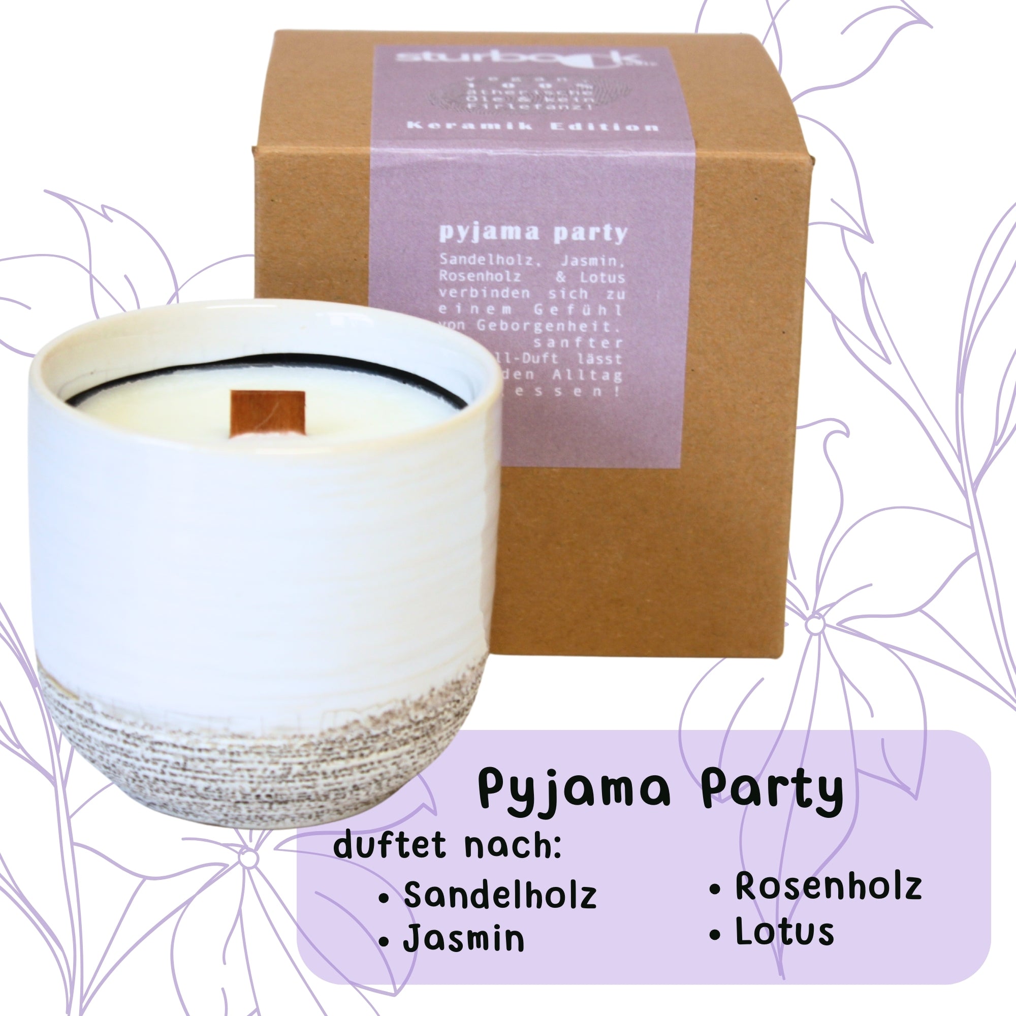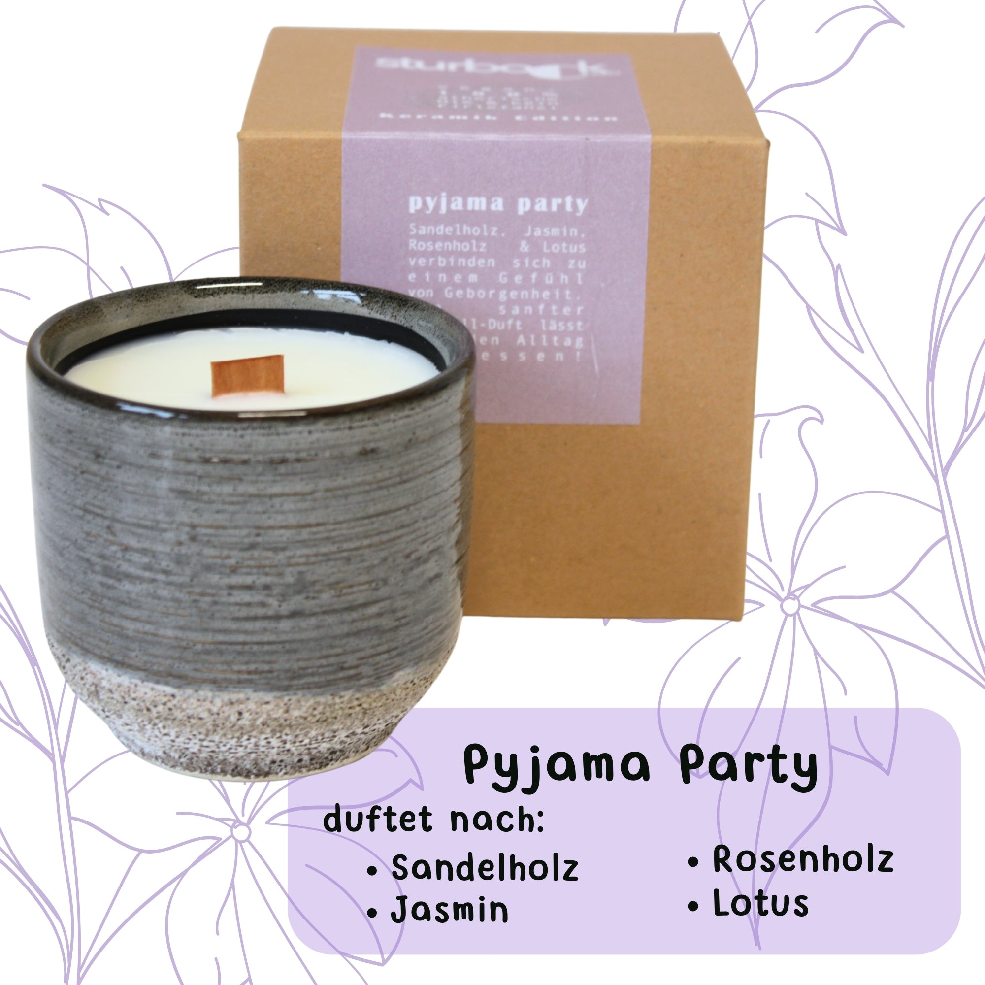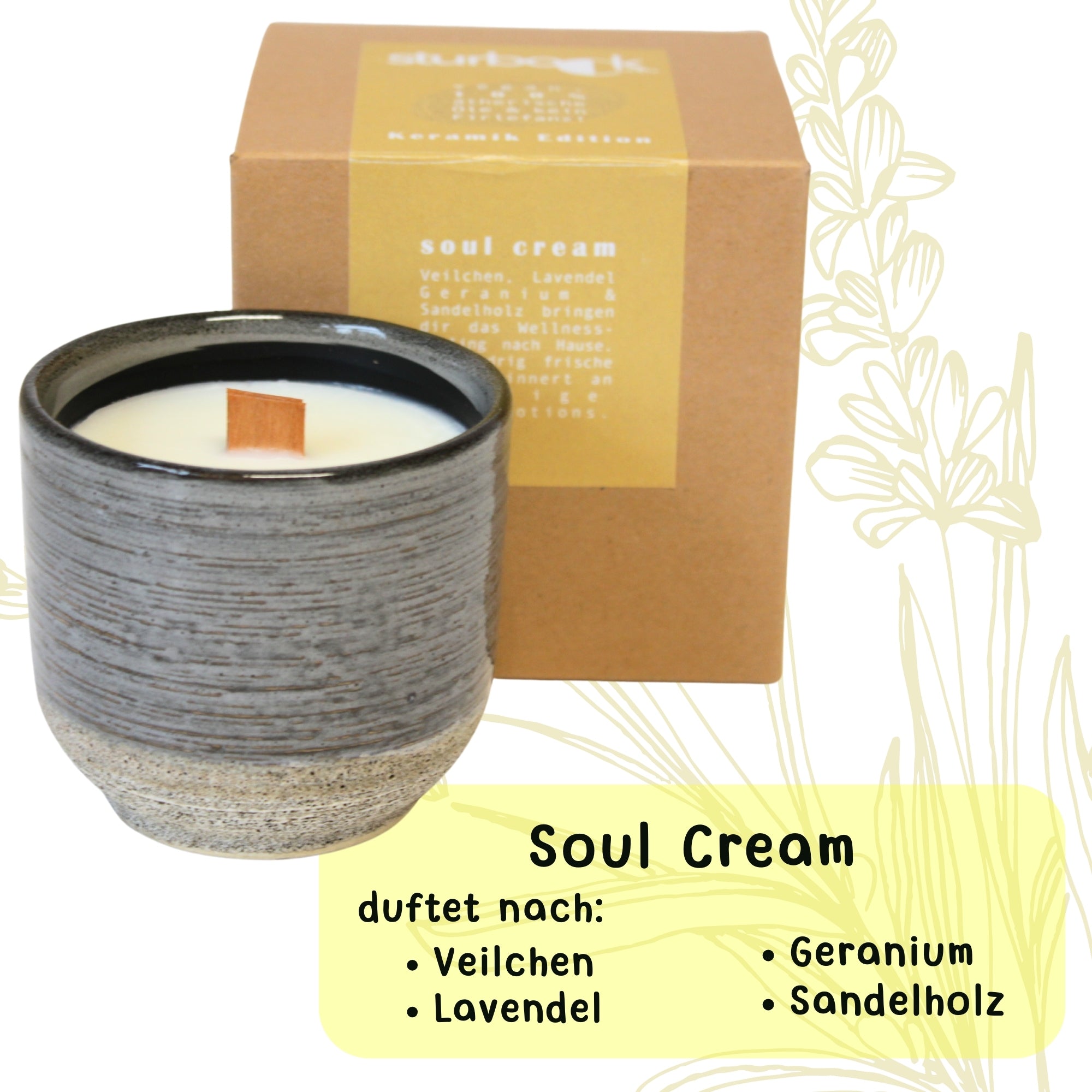 Sturbock Candle, Duftkerze mit ätherischen Ölen im Keramiktopf, mit Holzdocht Wooden Wick zur Aromatherapie