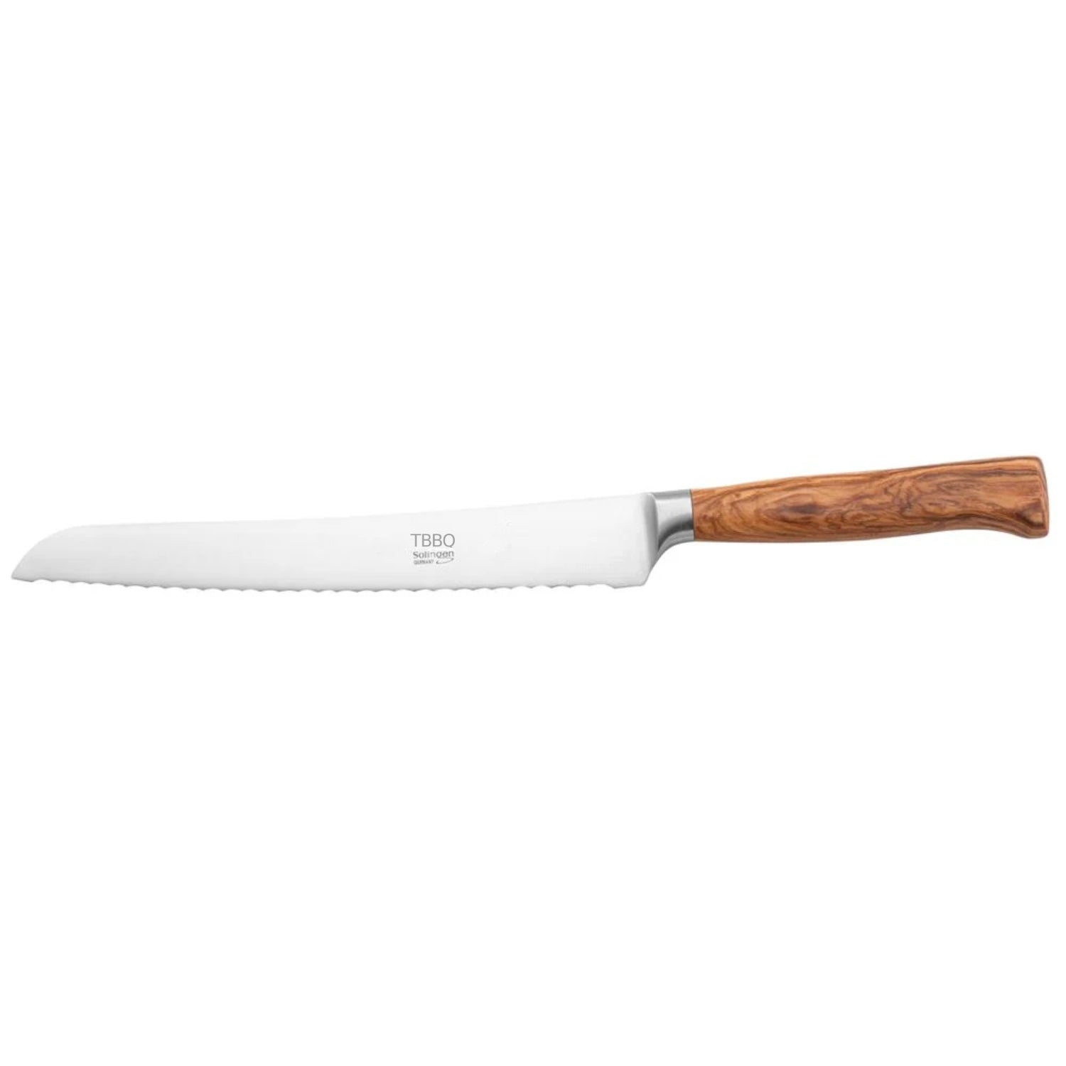 TBBQ Brotmesser mit geschmiedeter Klinge + Wellenschliff 20 cm, rostfrei, Olivenholzgriff
