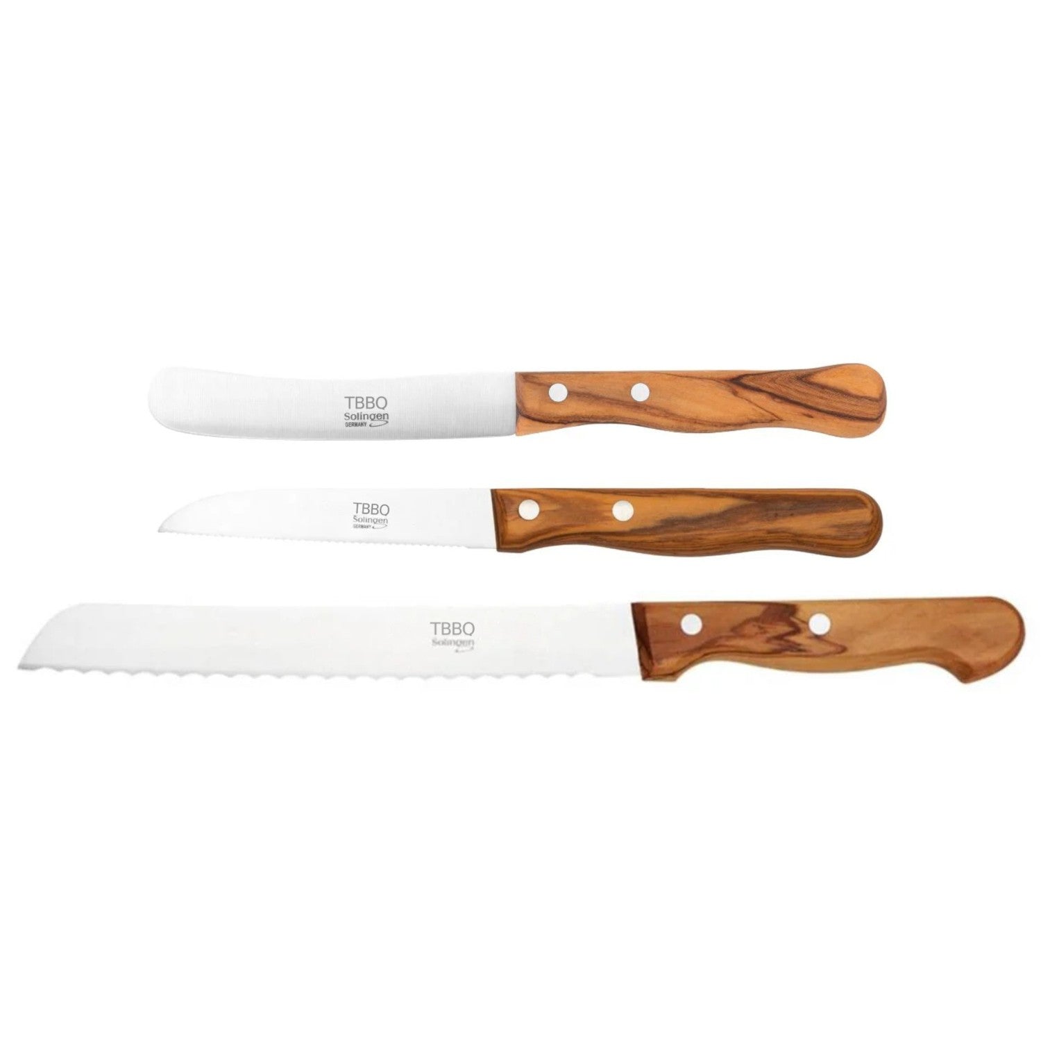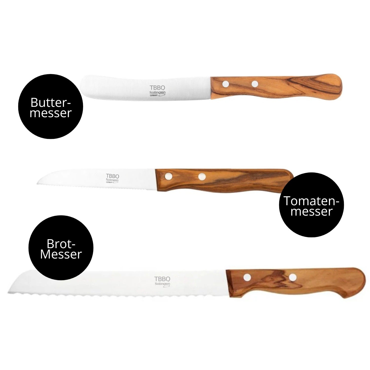 TBBQ Frühstücksmesser-Set, 3-tlg., inkl. Brotmesser, Buttermesser und Tomatenmesser
