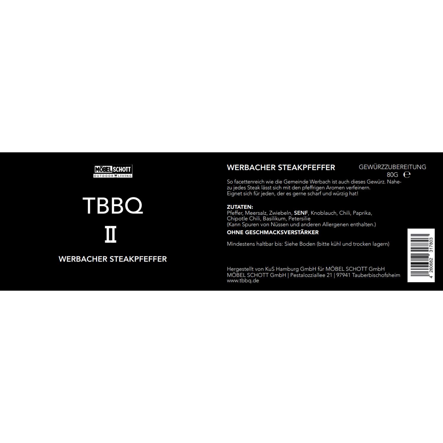 TBBQ II - Gewürzmischung, Werbacher Steakpfeffer für Fleisch, 80g