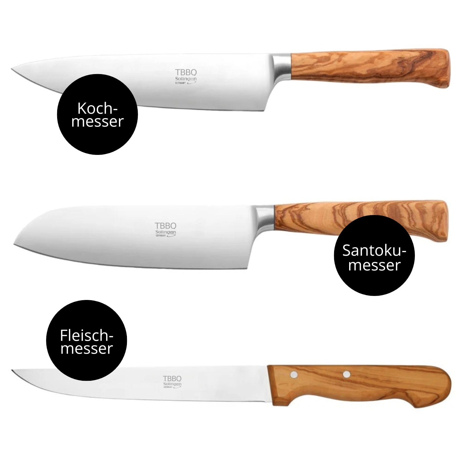 TBBQ Profi Messerset, 3-tlg., inkl. Santoku-Messer, Koch- & Fleischmesser