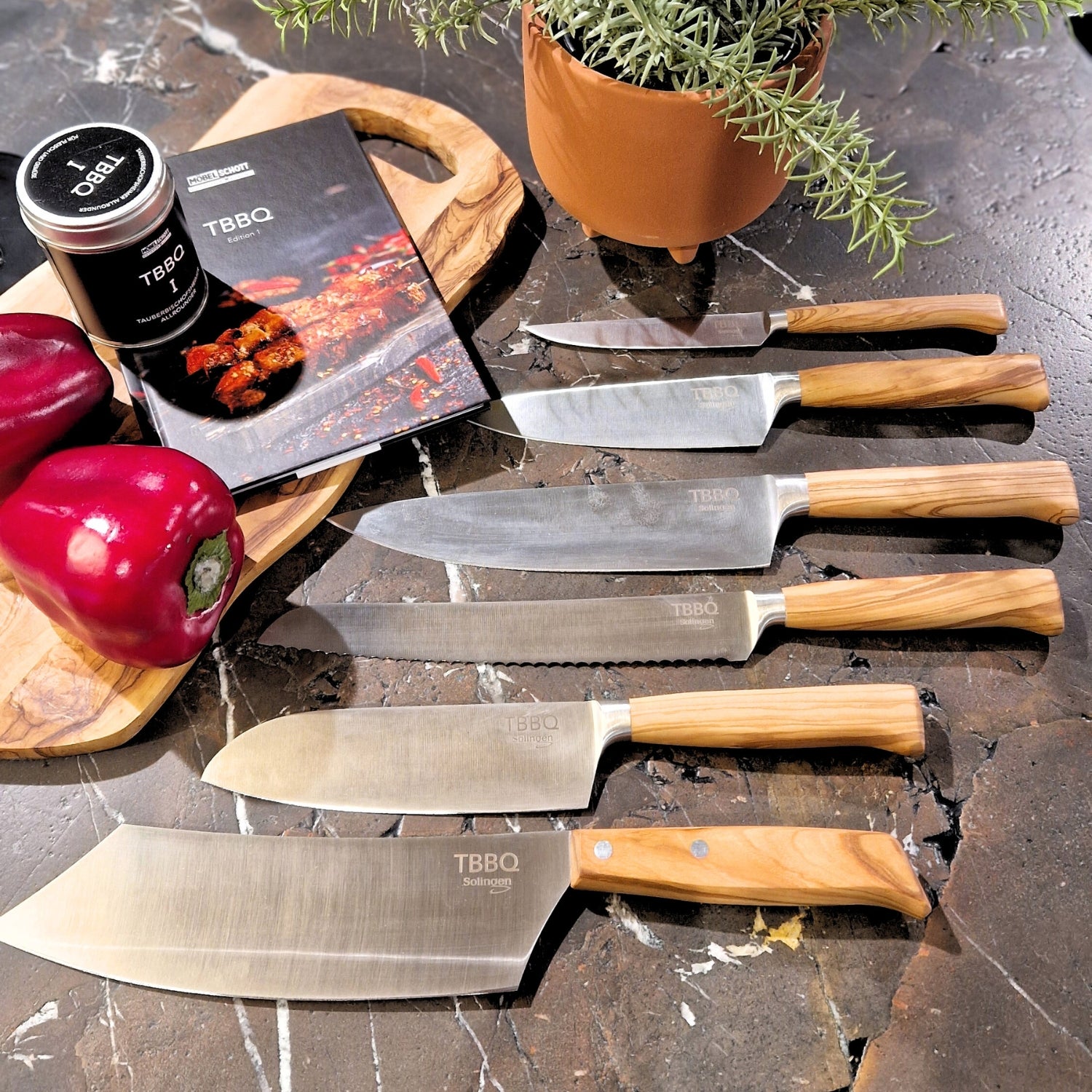 - Ergonomischer Griff aus Olivenholz für Komfort und Sicherheit