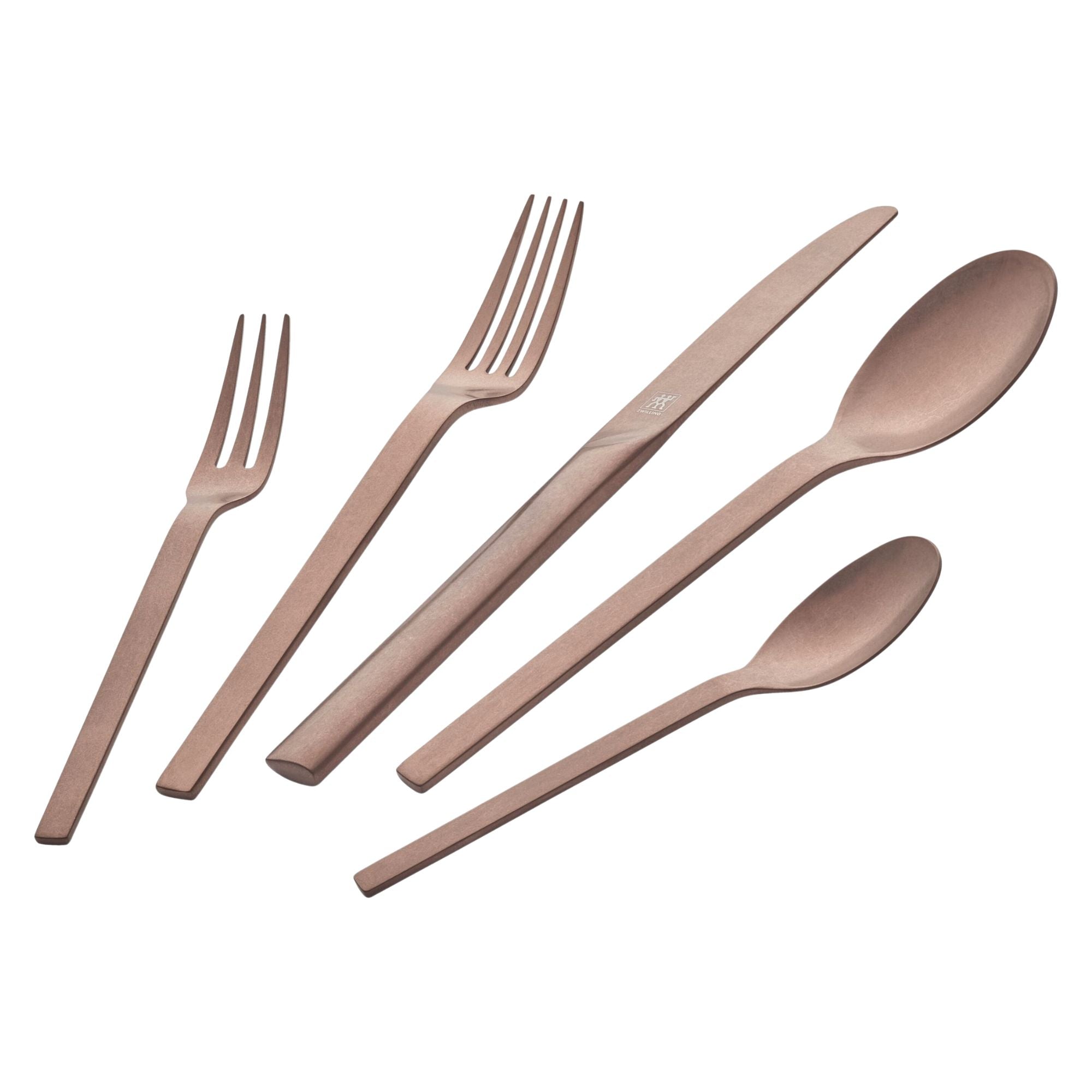 Das Set ist für bis zu sechs Personen konzipiert und besteht aus 6 Menümessern, 6 Menülöffeln, 6 Menügabeln, 6 Kaffeelöffeln und 6 Kuchengabeln.